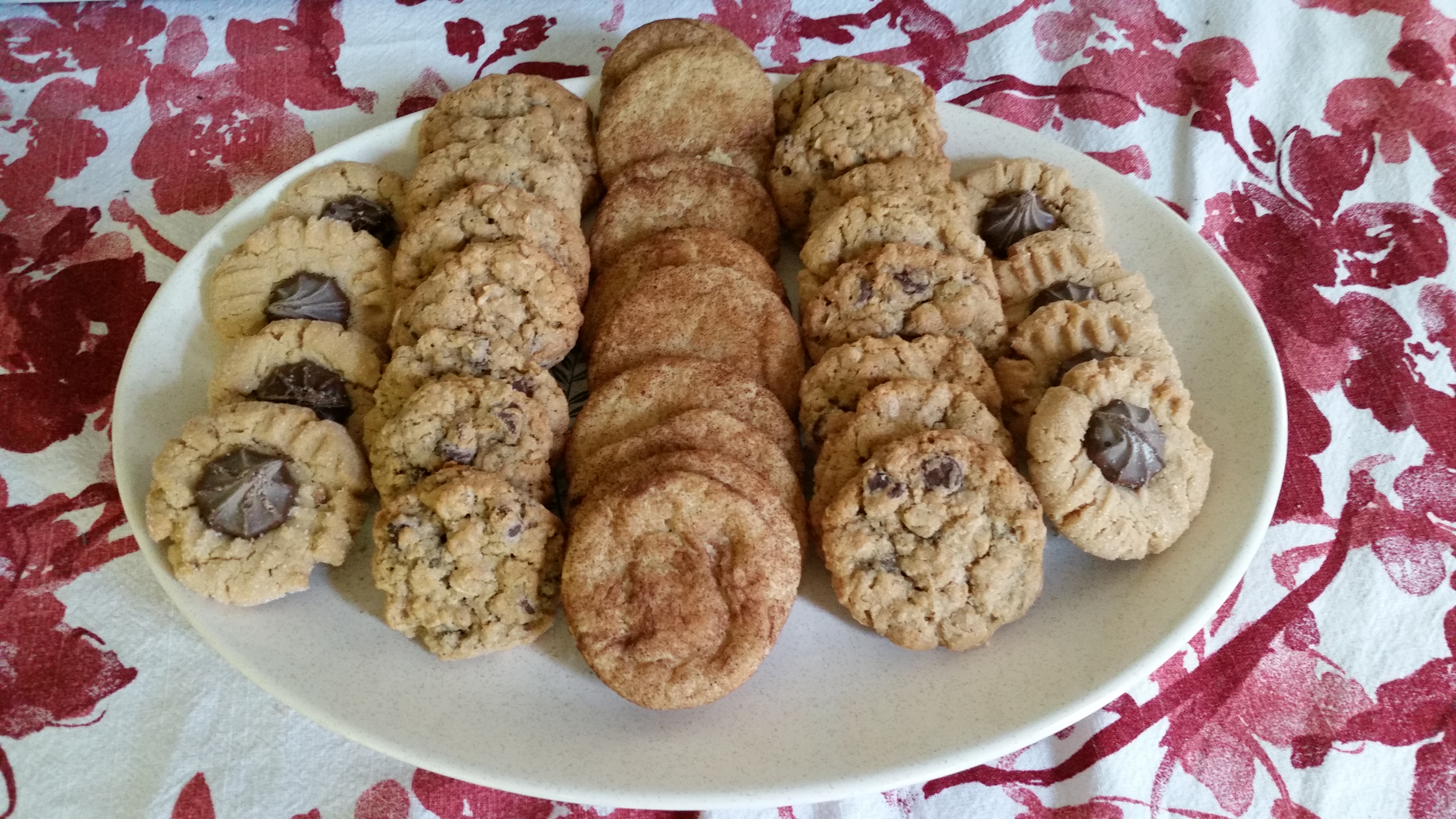 Chocolate Chip Oatmeal, Butterscotch Pecan, Orange Glaze, Lemon Basil, Peanut Butter, Frosted Pumpkin, Snickerdoodle, Sugar, Raspberry Filled Thumbprint, Chocolate Chocolate Chip, Chocolate Chip Almond, Oatmeal Raisin and Oatmeal Cranberry